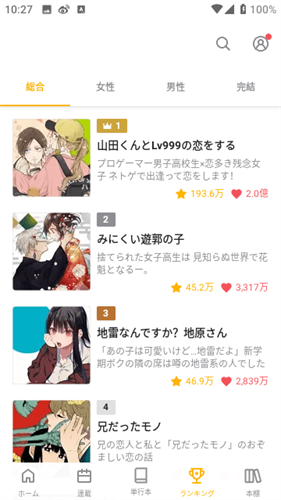 2、随时了解每个漫画的排名,同时还能浏览到很多正版的漫画作品。
