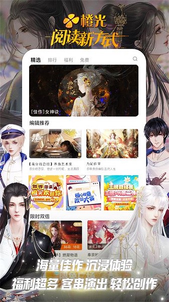 折扣活动、免费作品、限免作品、福利作品……橙光APP持续为你送上超值惊喜。参与抽奖、分享作品,还有更多福利等你来领!