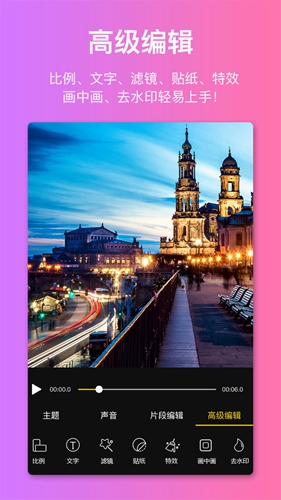 3、音乐配搭: 软件内含多种风格的背景音乐,同时支持用户自行上传本地音乐,打造出独一无二的MV效果。