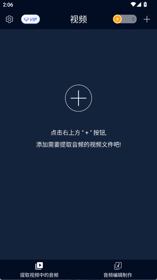 1、打开音频提取器app,点击右上角的+