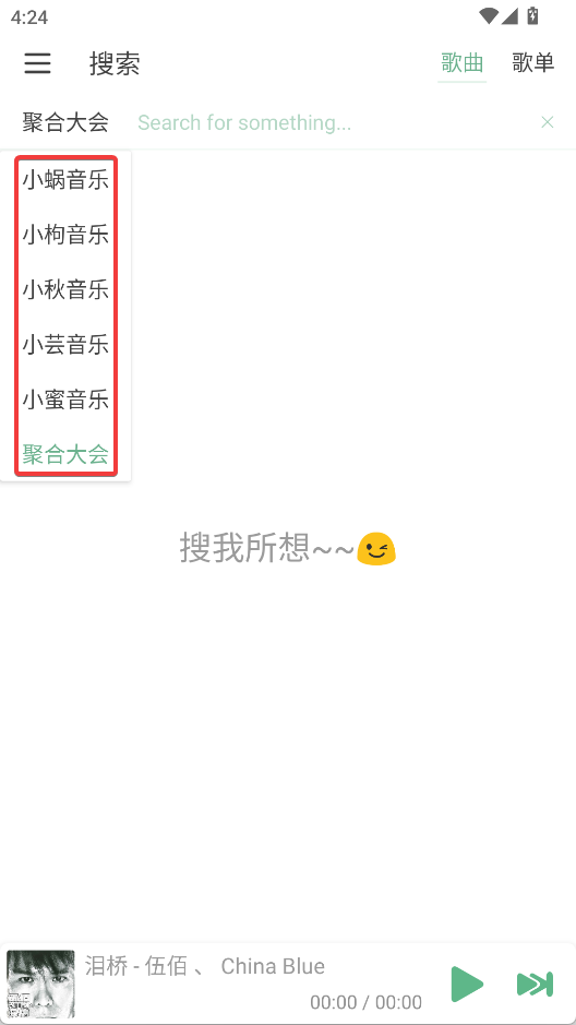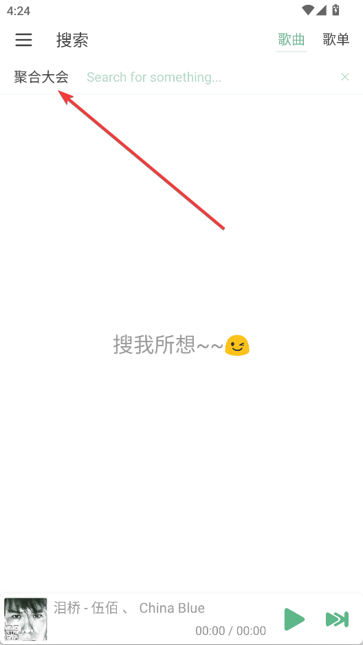 1、打开落雪音乐app,在搜索界面点击搜索框左侧的聚合大全