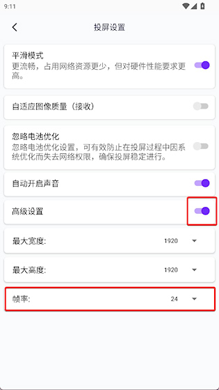3、开启高级设置,点击帧率选项进行更改