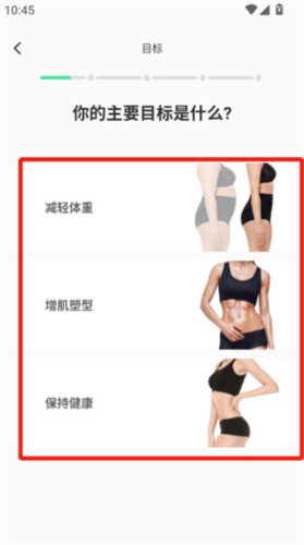 3、依次回答软件提出的问题,比如是减轻体重还是增肌塑型;