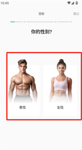 2、跟随健身教练提示,先设置性别,明确制定计划的基础前提;