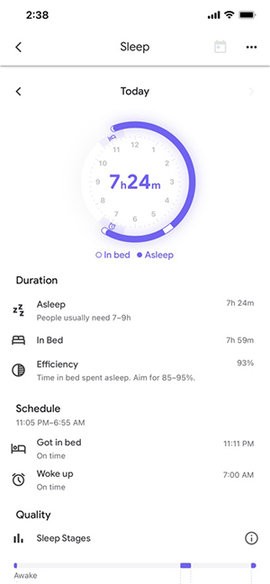 2、睡眠管理:自定义就寝时间表,对比监测睡眠状况是否达标;