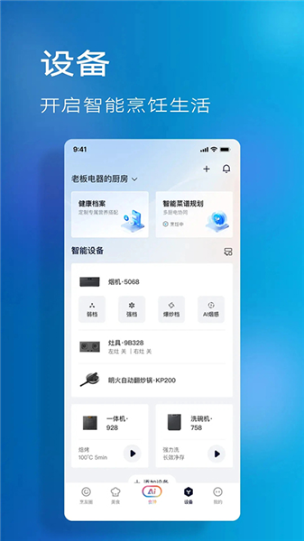 老板食神app是一款功能非常全面的智能烹饪系统软件,该软件为用户提供了智能烹饪、智能安全、智能服务、智能生态等功能于一身,通过软件大家可以与自己家里的设备进行连接,然后就可以使用软件来进行设备的控制了,同时软件使用起来也非常简单,让大家可以轻松的烹饪出美食出来。