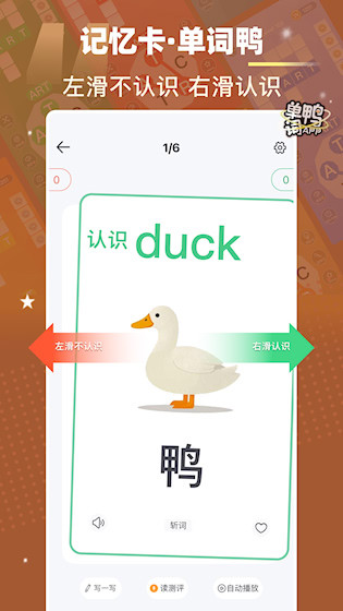 单词鸭是一款将英语单词学习与游戏机制融合的应用,通过“消消乐”和“数独”等趣味玩法,让背单词过程变得轻松有趣。可在滑动匹配、拼词闯关中自然掌握词汇,摆脱传统死记硬背的枯燥感,支持自建词库,能根据个人需求生成专属记忆卡片与游戏关卡。