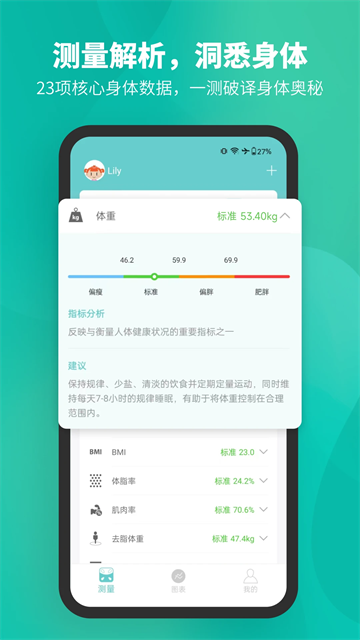 关注肌肉增长与身体成分比例的健身人士可利用精准测脂功能,评估训练成果并调整锻炼强度。