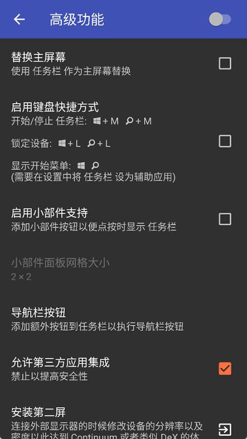 任务栏Taskbar汉化版是一个简洁但强大的任务栏辅助工具,能够高效管理后台任务的手机工具,让操作体验更加流畅便捷。支持将任务栏自由放置在屏幕任意位置,例如底部、左侧或右侧,并允许自定义高度与宽度,用户可以根据自己的需求进行调整,可以更好的提升手机使用效率。100%免费、开源且无广告,让用户在安卓手机上畅享纯净高效的多任务操作体验。
