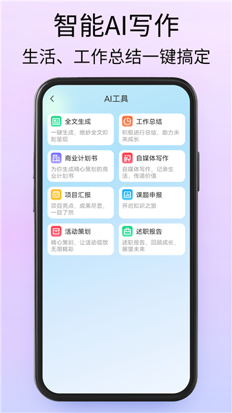 3.功能强大的智能AI 写作功能,生活工作总结都一键搞定