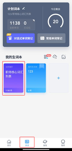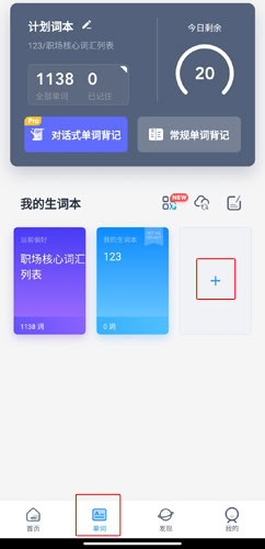 1、在单词页面中点击+按钮;