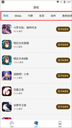 9、点击底部 “游戏” 板块,这里游戏分类详细,可任意挑选。