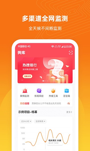舆库app是一款非常实用的手机舆情监测软件,目前为大家提供了收集、监控、溯源和预警等功能,方便用户们可以直接在平台内进行多维度的大数据分析,并且系统还会自动监测目前最新的社会热点话题,当有最近的突发事件和重大情报的新闻时app也会快速进行识别和追踪,帮助新媒体的工作者们可以及时了解到最新的热点资讯,对舆情掌控的更好。