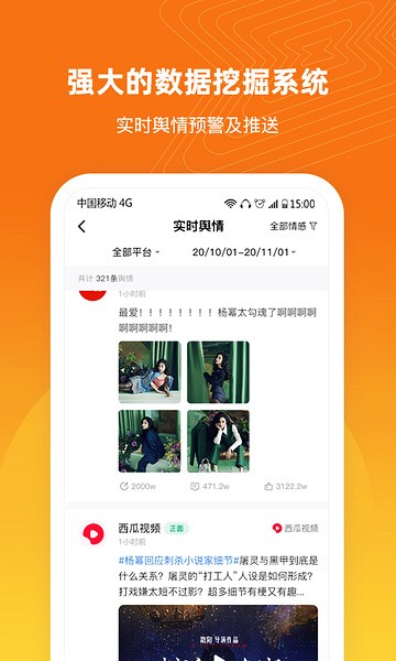 3. 实时监控和预警:能够实时监控舆情动向,并提供预警功能,帮助用户及时应对突发事件。