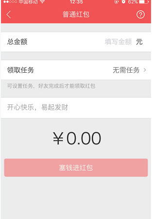 4、在发红包界面,填写金额(单次最大金额不能超过200元),填写后点击“塞钱进红包”按钮,即可成功给好友发送红包。