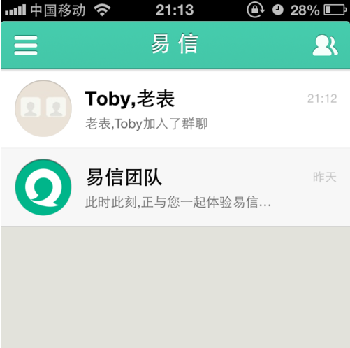 1、首先下载易信至手机,打开后输入账号名及密码,点击登录,进入主界面。