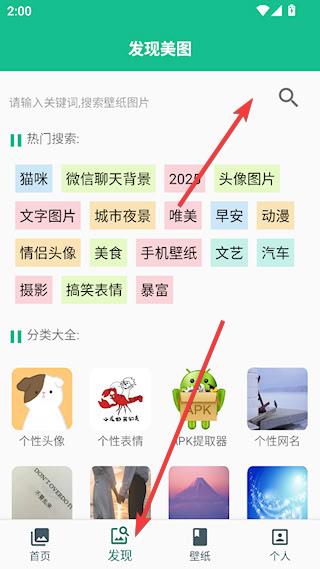 2、【发现】专栏提供了更多的选择,支持关键词搜索