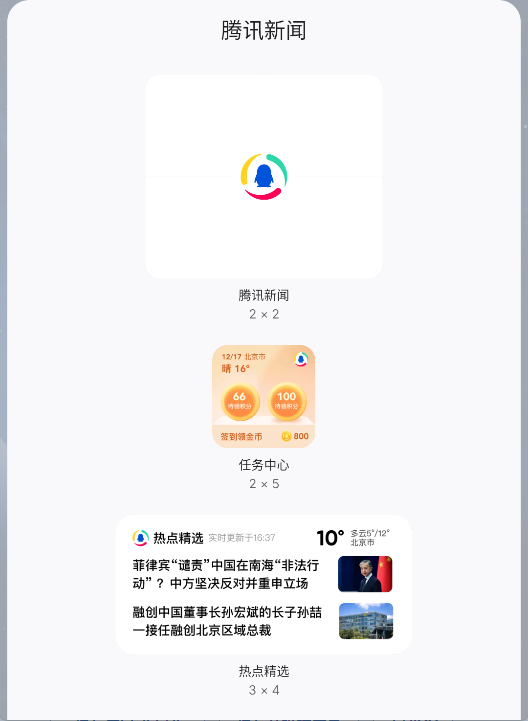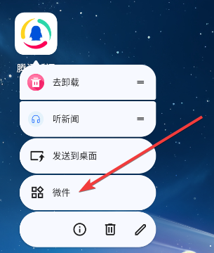 1、在桌面长按腾讯新闻app的图标,选择微件