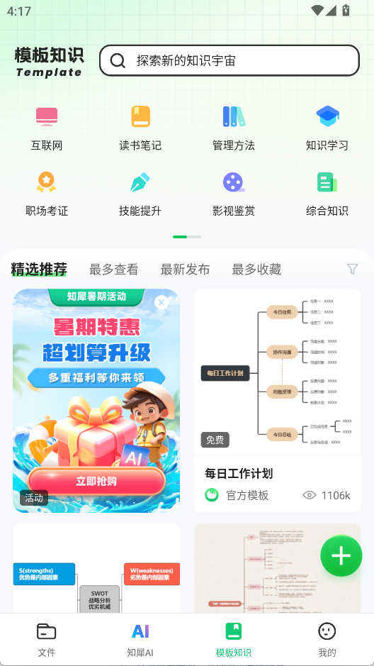 2、模板知识库庞大:5000+免费模板覆盖教育、职场、考证、生活等30+行业,搜关键词即可套用,效率直升。