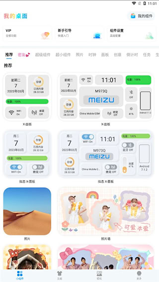 2、根据喜好选择不同类型的组件,如照片墙、时钟、倒数日、任务管理、便签等。