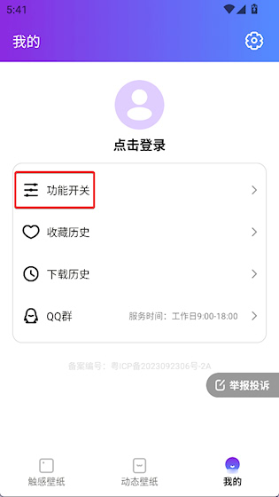 2、点击功能开关选项