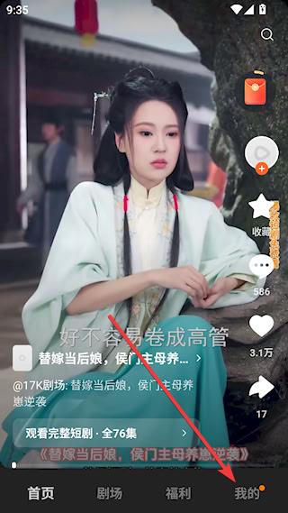 1、下载安装后点击进入红果免费短剧APP首页,点击【我的】