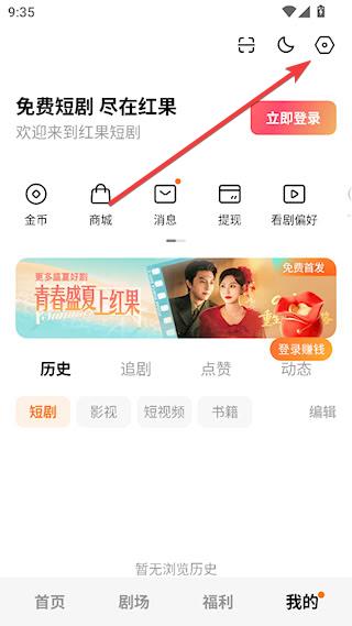 2、在【我的】页面,点击右上角设置标志