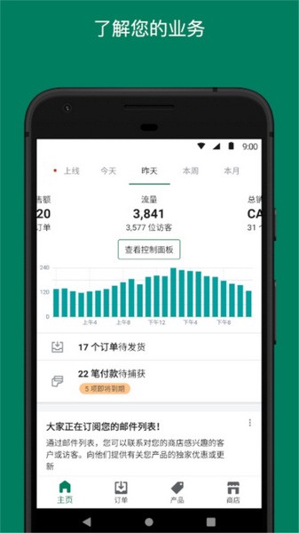 查看实时销量和访客流量;