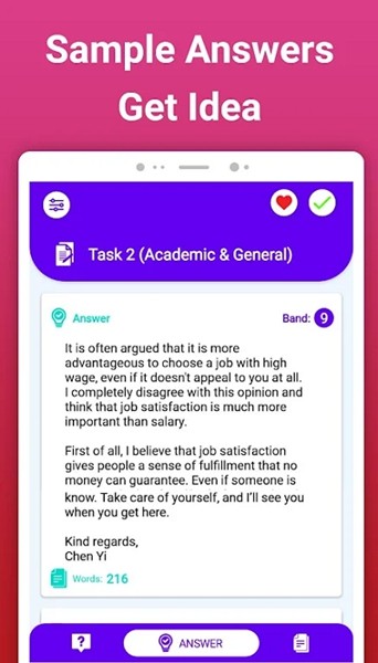 IELTS Writing App是一款离线英语学习软件,用户可以通过软件对雅思英语进行备考,软件为用户提供了全方面的备考指南与学习教程。IELTS Writing App为用户提供了多种分类的文章样本与单词解析,让用户能够清晰有效的学习标准英语表达方式,拓宽用户词汇量,让用户能够在自学的道路上少一点障碍。IELTS Writing App是一款单机应用程序,无需联网即可使用,因此用户可以随时随地、无障碍的进行学习。