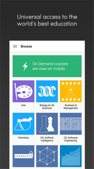 Coursera app是一款优质的在线教育辅导软件,汇集了全球顶级名校的课程资源。通过与世界各大顶尖大学深度合作,Coursera满足了百万中国用户的学习与辅导需求。提供超过25个专业领域的800多门优质免费网络公开课程,涵盖计算机科学、法律、数学、音乐、医药等各个领域。每门课程内容精短有力,无废话,贴心的提醒和离线下载功能让学习更便捷,致力于轻松让用户足不出户享受全球顶级教育资源。