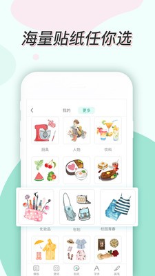 3、超多壁纸、贴纸、胶带、字体和模板可使用,海量素材让手帐记录变丰富。