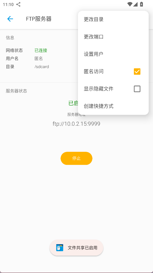 3、点击开始即可启用局域网服务器