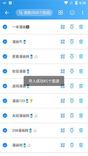 3、进入书源页面后,点击右上角的更多图标,即可选择书源导入方式。