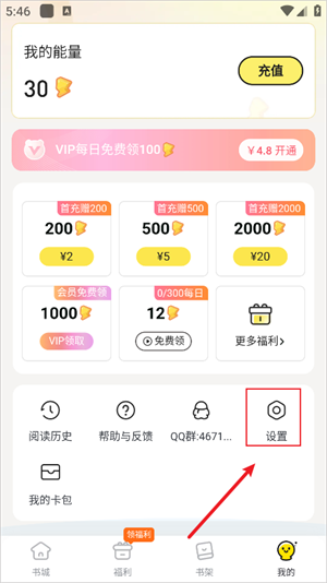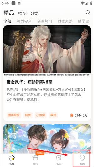 1、打开点点穿书app,点击右下角我的。