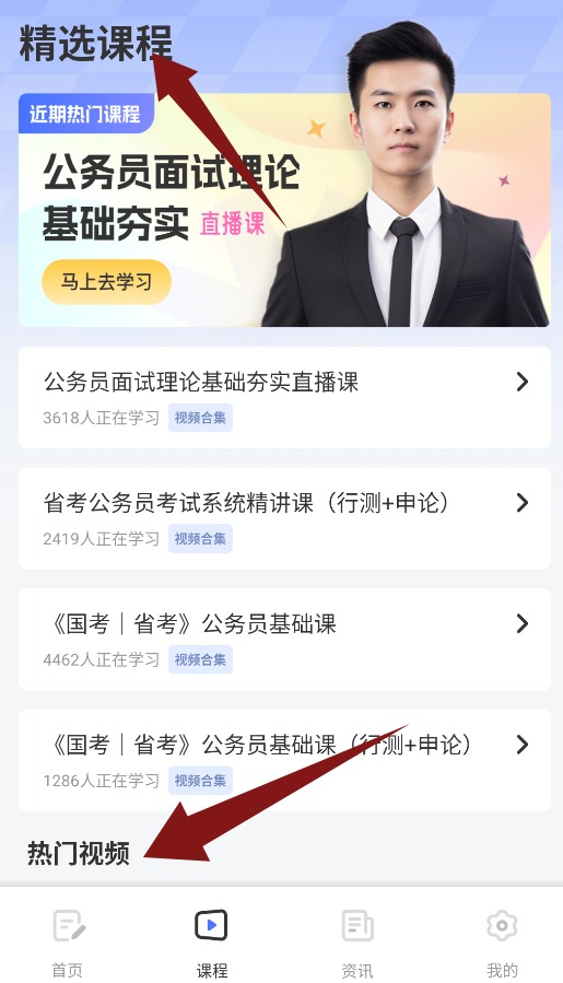 3、课程界面汇聚精选课程与热门教学视频,各类优质学习资源可直接查看学习;