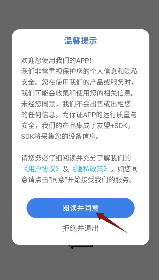 1、首次启动应用,需点击确认温馨提示,完成同意操作后即可进入学习主界面;