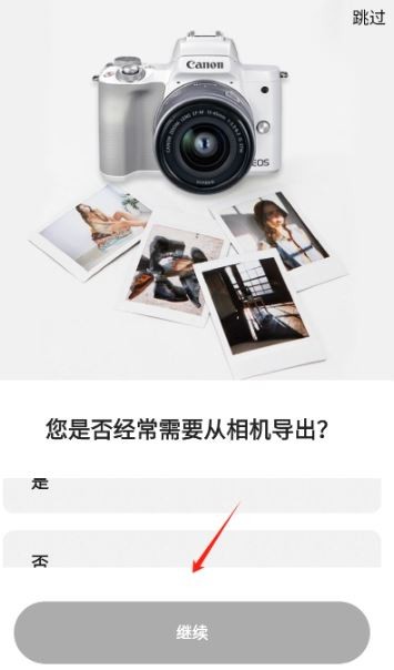 4、当询问是否需要从相机导出内容时,点击“继续”按钮即可。