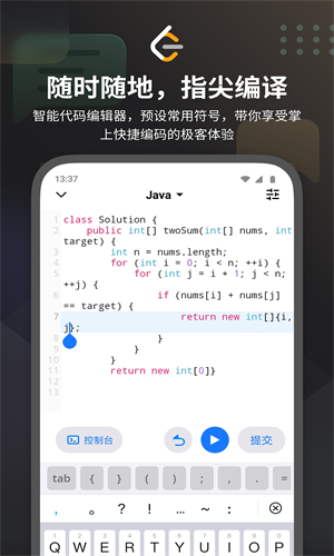 1、内置智能代码编辑器,添加预设常用的字符串与代码组,带你享受掌上快捷编码的体验。