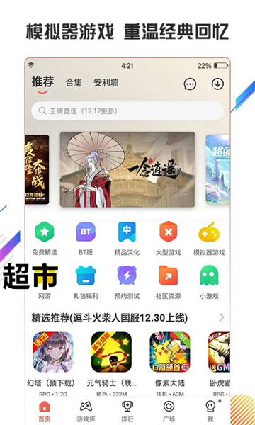 3、点开游戏库,有游戏分类、免费软件、单机热游、国际服等多种类型的游戏推荐。