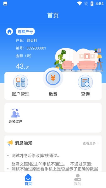 5、用户端快捷缴费;快捷申请更名过户流程。