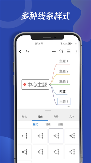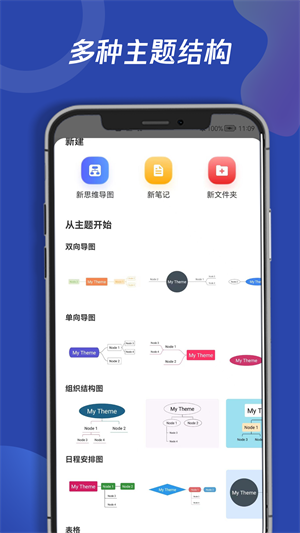 3、软件给用户提供了多种主题结构,方便用户轻松搭建出一个干净、简介的导图模板。