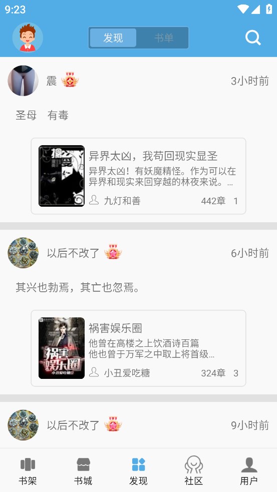 2、全网书迷们可以一起聊天、讨论作品,还为读者提供了完善的在线免费书城能浏览。