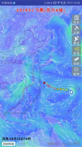 2、利用全新的台风技术监控手段,能一键获取包括云图、雷达图和风场等关键气象信息。