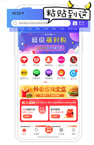 1、多平台查券:支持淘宝、天猫、京东、拼多多复制商品,一键查询优惠券并可分享赚奖励。