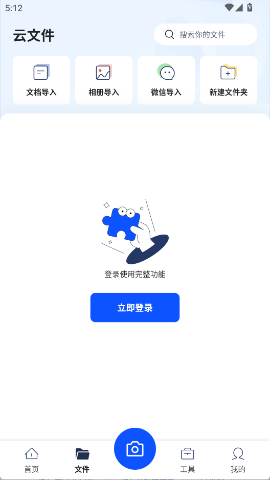 2、进入文件界面,能导入、管理手机和云端文件