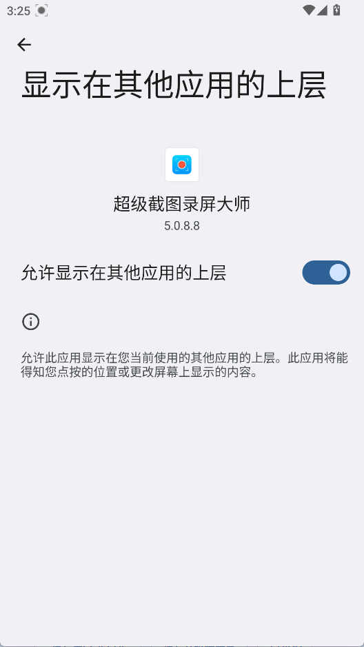 3、在弹出的界面找到超级截图录屏大师图标,点击开启“允许显示在其他应用的上层”