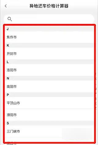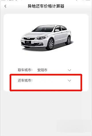 7、点击“还车城市”下拉菜单,挑选还车城市。