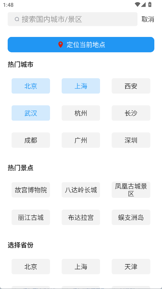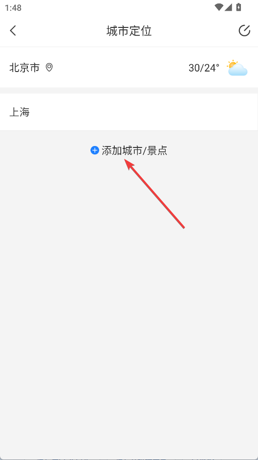 2、点击添加城市/景点