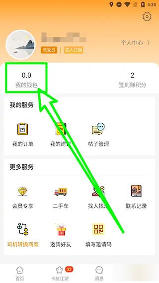 1、登录卡兄卡弟首页,选择“个人钱包”入口
