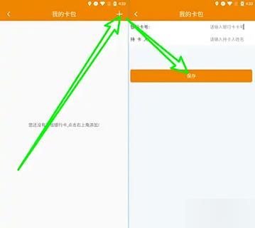 3、在页面右上角找到“添加”按钮,输入银行卡信息完成绑定